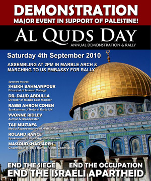 4. Jerusalem Day - or should I say "Quds Day"? 'Jerusalem Day paves the way for Israel's collapse', Iran's Thug-In-Chief predicts removal of "the Zionist regime from the world scene" - Jihad Watch, and Pajamas Media » Iran’s Anti-Israel Protest Reveals Regime Fearful of Domestic Opposition